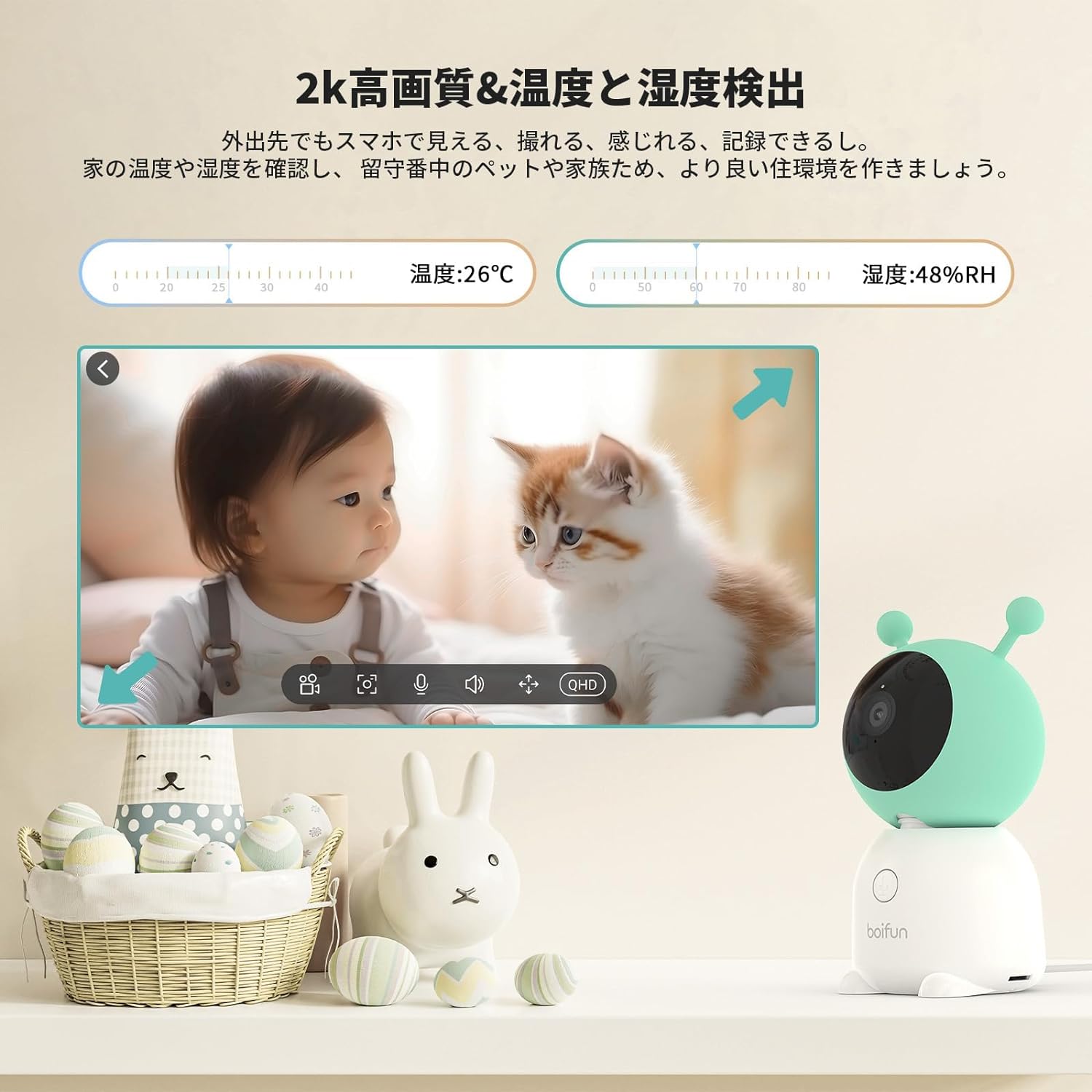 ベビーモニター スマホ ベビーカメラ 赤ちゃん見守りカメラ CM0010